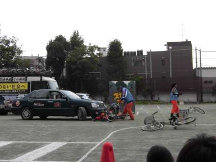 学校公開最終日の8日、スタントマンの方々によるスタントが行われ、交通事故の危険性を教えていただく特別授業が実施されました。