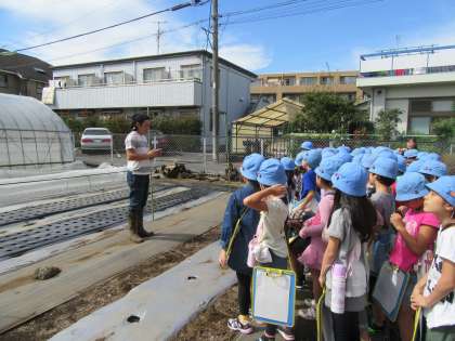 今日は、近くの農家に社会の学習で農家見学に行ってきました。