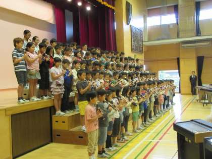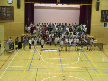 全校で歌った「スマイルアゲイン」は、素敵な歌声に自然と子どもたちから笑みがこぼれていました。