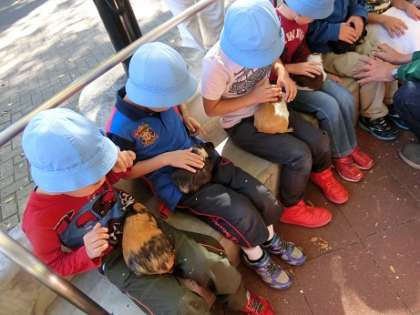 園に着いてからはモルモット体験教室とオリエンテーションを行い、たくさんの動物との触れあいを楽しみました。どの班も協力してオリエンテーリングを頑張りました。
