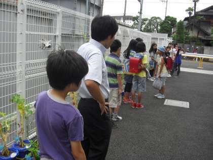 今日から挨拶週間が始まりました。6年生が最初のおはよう挨拶隊となって、正門と黄色門で、登校するみんなに挨拶をしました。