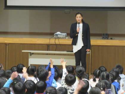 オリンピック、パラリンピック教育の一環として、元オリンピック日本代表競泳選手の伊藤華英さんが来てくれました。