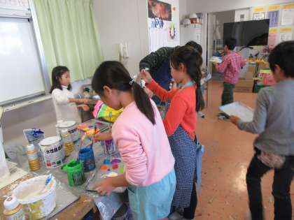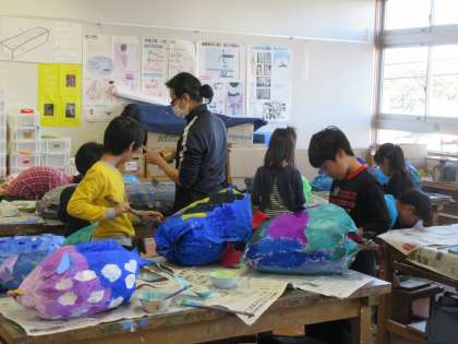 図工で取り組んでいる「空を泳ぐ魚」がいよいよ完成します。