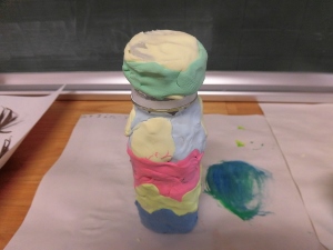 色は、粘土にねりこんだり、後から筆で塗ったりいろいろな方法を試しました。