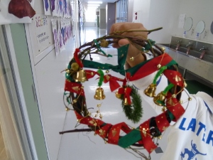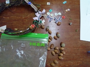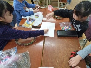 12月10日に、さつまいもとあさがおのつるを巻いたリースにかざり付けをしました。