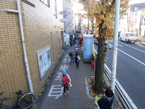 下校するときは、方面別に集まって下校します。