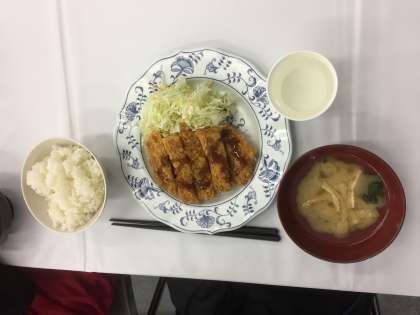 本日の昼食はチキンかつでした。午前9時から11時までの講習が終わり11時30分からの昼食です。