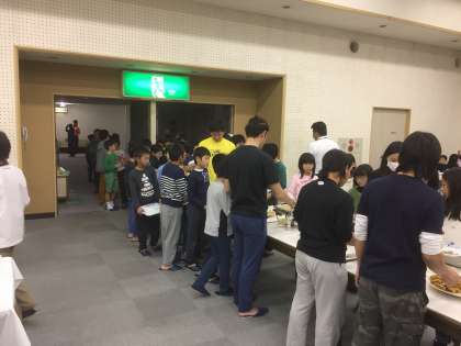 焼きそばやグラタンのお代わりには多くの子供たちが群がりました。