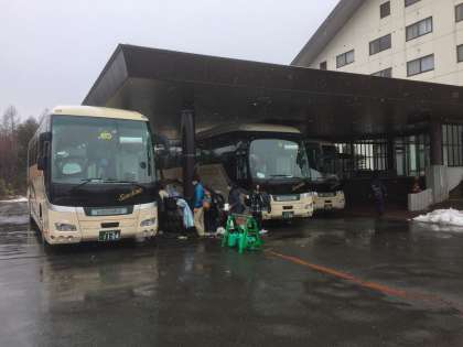 午後12時30分に予定より30分早く、バスで東京に向けて出発しました。
