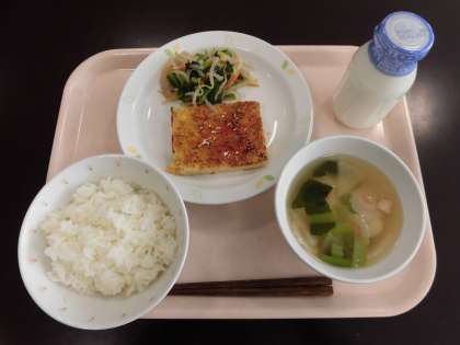 チャーハン 牛乳 わかめスープ さわらの立田揚げ