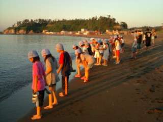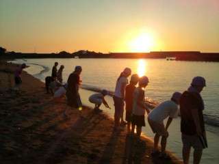 夕日の海岸を散歩しました。都会ではなかなか味わえない美しい景色でした。