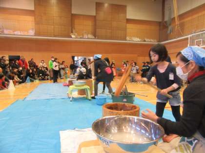 みんなで「よいしょ」のかけ声で子どもたちが一人一人餅をつく姿は、去年よりも力強く感じられたかと思います。