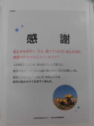 今月、校舎内に貼られているポスターには「感謝」という文字が書かれています。
