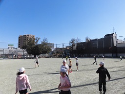 1年生〜6年生までの縦割り班で昼休みを使って一緒に遊びます。