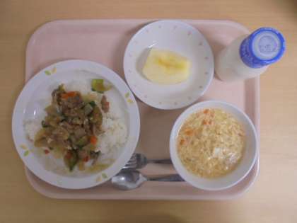 酢とラー油が入ったサンラータンが出ました。給食用に酢もラー油も少なめにしたので、よく食べてくれました。