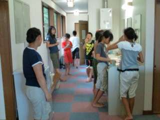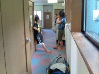 アクアパークに行く前に部屋を片付けたり荷物を廊下に出したりと、大忙しです。