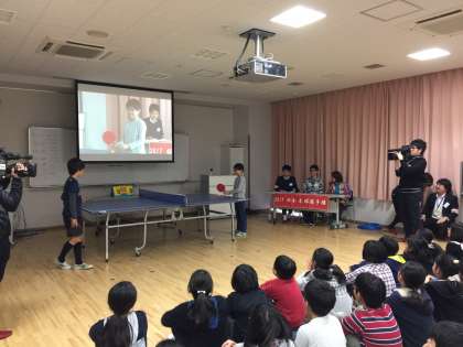 最後に、増田アナウンサーが世界卓球の実況中継をしていた経験から、今回特別に「桜小卓球選手権」を行い、実況中継して貰いました。