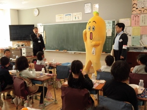 授業で登場したテレビ東京のキャラクターである「ナナナ」が、1年生の教室にも遊びに来てくれました。