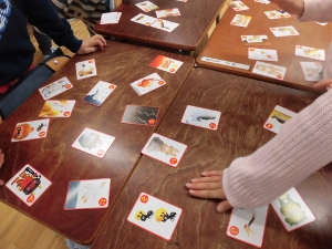 かるた、だるま落とし、おはじき、けん玉、こま、めんこ