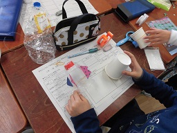 今2年生は1年生との「おもちゃフェスティバル」にむけて準備をしています。おもちゃの見本を作ったり、お店の紹介を考えたりしています。