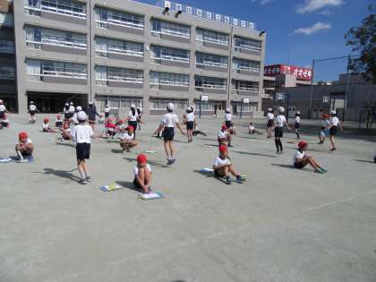 朝は、長縄記録会でそれぞれのクラス目標に向かって全力で取り組みました。