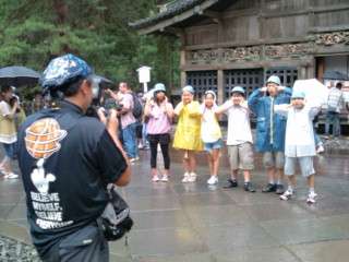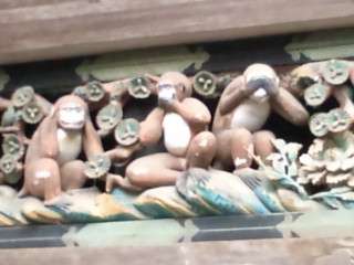 有名な三猿の前で記念撮影。