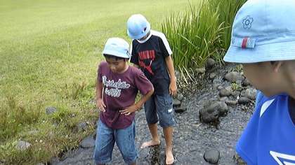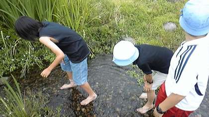 昼食場所のだいや川公園では川遊びもしました。蛙をゲットした子もいました。ちなみに現在は雨の中東照宮を見学中です。