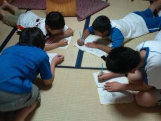 寝る前に日記を書きます。班長会議の後は消灯です。
