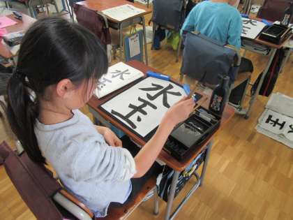 「水玉」は、3年生で習った止め、はね、はらい、折れなど全ての要素があり、まさに集大成でした。