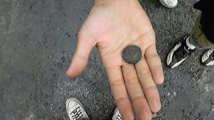 湯本源泉にいます。源泉の中にいれたら新品だった10円玉がこんな色に…