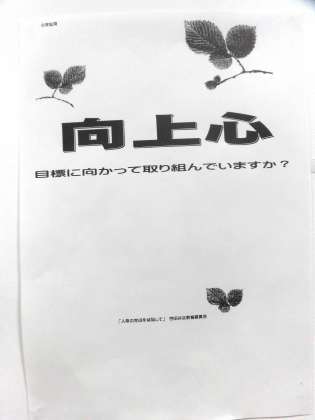 さて、今月教室に貼られているポスターには、「向上心」と書かれています。何事にも前向きに考え、挑戦することが大切だという話を先週にもしました。今日は、前向きということについて話をしたいと思います。