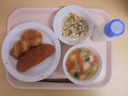 砂糖味ときなこ味のあげパンが出ました。どのクラスでもおかわりじゃんけんが繰り広げられていました。