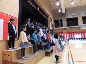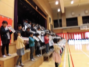 3月16日は1年生の音楽朝会の日でした。