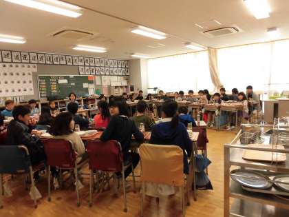 ランチョンマットを作成したり、ゲームを考えたり、6年生の配膳をしたりと大忙しの5年生。