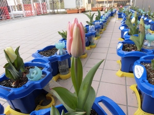 12月に植えたチューリップの球根が咲きそうです。