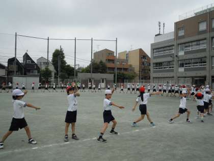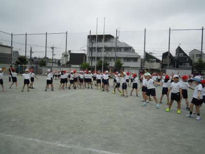 運動会に向けて、ダンスの隊形移動を練習しています。