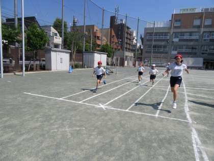 走順に並んで、同じレースで走る子たちで話し合ってコースを決めました。