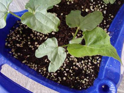 5月初めに種をまいたあさがおが、本葉を出しました。