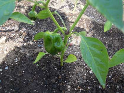 ピーマンには小さな実がなりました。これから実が大きくなるのが楽しみです。