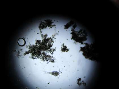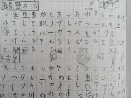 顕微鏡で覗いてみると、ミジンコやゾウリムシなどの微生物を見付けることができました。