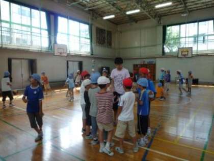 休み時間に友達と体育館で遊ぶ様子(写真1枚目)
