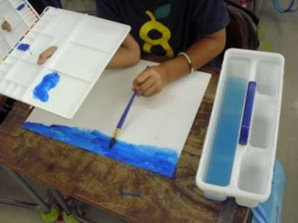 2学期に入って、はじめての図工では絵の具の使い方を勉強しました!