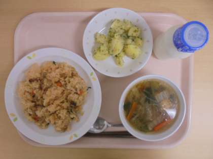 後味がピリッと辛いキムチチャーハンでしたが、1年生もたくさん食べてくれました。キムチを初めて食べる子もいたようです。給食では様々な食材やメニューを出して、たくさんの味に出会ってほしいと考えています。