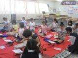 美術では水墨画、音楽は三味線、パソコンではネームカード作りにチャレンジしました。初めての活動でしたが、中学の先生の分かりやすい説明もあり、みんなとても上手に作業をすることができていました。