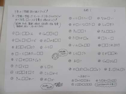 ひらがなで書いてある空欄の中に当てはまる言葉を書き入れます。