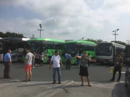 予定では高坂サービスエリアで休憩でしたが、あとあとのことを考え上里サービスエリアまで足を伸ばして休憩しました。バス酔いの児童が数名おりますが、順調に関越自動車道を進んでいます。一号車では、バスガイドさんが手遊びなどをしてくれて、バス酔い防止に努めてくれていました。