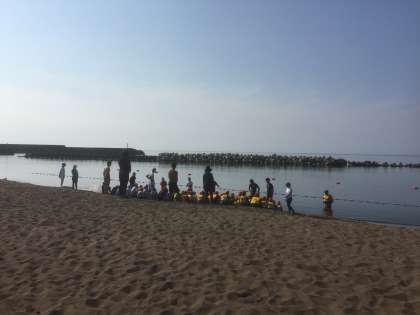 今日は、35度を超えるような酷暑だったのですが、水の中は本当に気持ちが良かったです。最高のコンディションでした。安全に1日目の海泳ぎが終了しました。