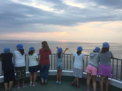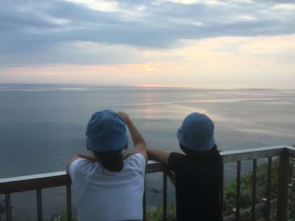 海辺の散策に行ってきました。夕陽の綺麗な展望台に行きました。海に沈む夕陽は、残念ながら見られませんでした。しかし、雲の合間のオレンジ色の夕陽はとても綺麗でした。