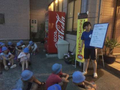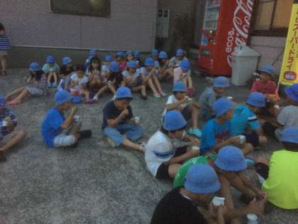 海辺の散策を終えて宿舎に戻りました。宿舎前では、ヨーグルトを食べました。このあと、就寝準備の後に就寝となります。本日のホームページのアップはこれで最後とします。現在、体調を崩している児童はおりません。