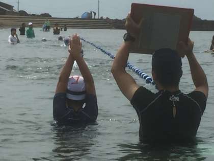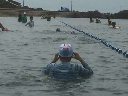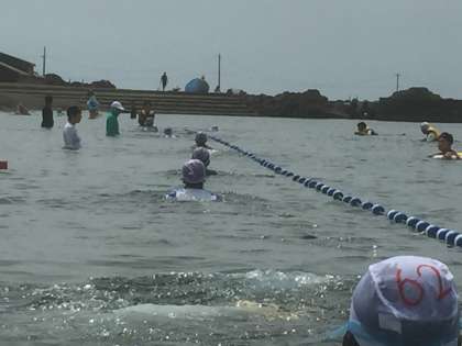 海泳ぎ検定が始まりました。ゆっくりと自身の力を温存しながら長く泳ぐことが目的です。いかにらくをしながら泳ぐことができるかです。